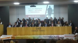 A diretoria do ATENS participa, na tarde desta terça-feira (14), de uma manifestação organizada pelo Conselho Federal da OAB e a Pública – Central do Servidor em Brasília. As entidades deram entrada em um substitutivo com emendas para a Reforma da Previdência na Câmara dos Deputados. Participam do evento a presidente da ATENS UnB, Mona Lisa Lobo de Souza Choas, e o diretor Joaquim Aquiles Gonsalves Castanheira.