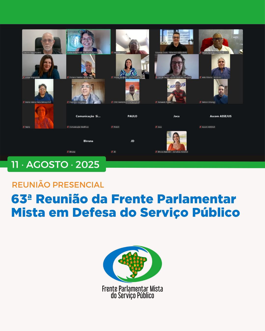 No dia 11 de agosto de 2025, o ATENS Sindicato Nacional, representado por sua Secretária-Geral Camila Mokwa Zanini, participou da 63ª reunião ordinária da Frente Parlamentar Mista em Defesa do Serviço Público. O encontro, realizado virtualmente, reuniu lideranças sindicais e parlamentares para avançar na articulação contra a Reforma Administrativa e preparar estratégias de mobilização até o fim do ano.