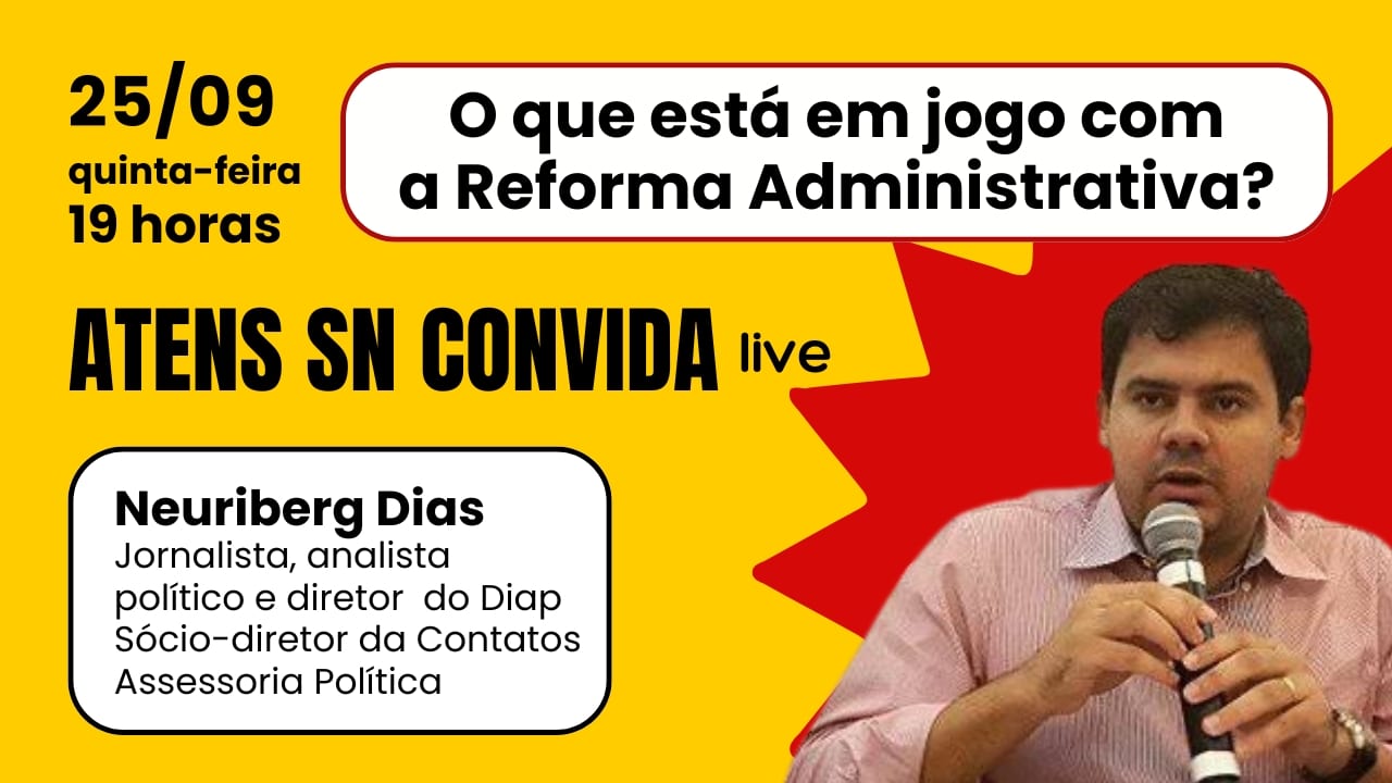 É hoje: Live do ATENS SN debate os riscos da Reforma Administrativa